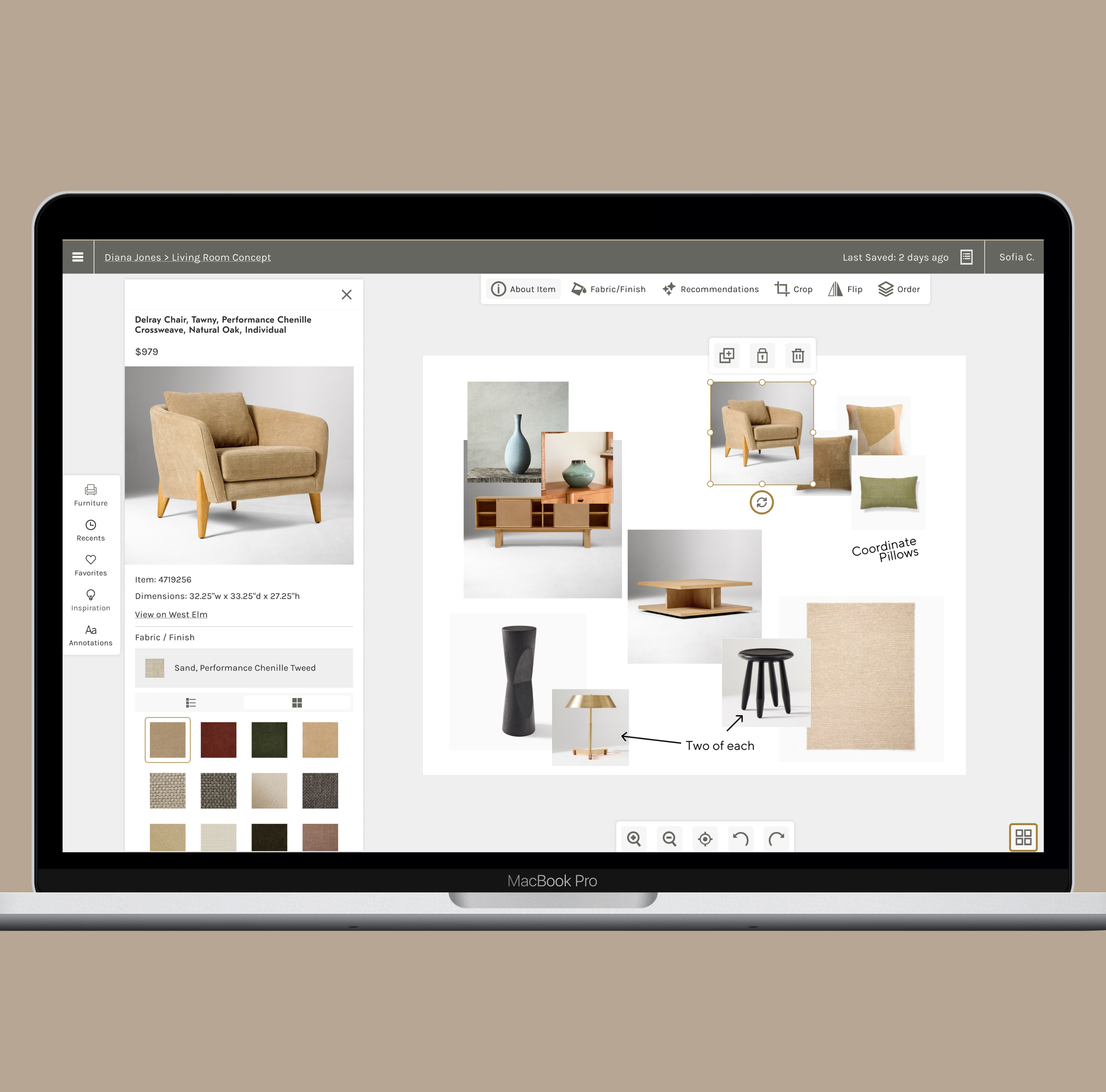 Projects created for Outward, Inc. — a Williams-Sonoma subsidiary Room Planner Room Scanner Bedding Visualizer Mood Board Room Planner Bedding Visualizer Mood Board New List Item Room Scanner